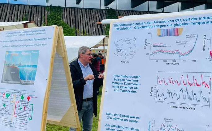 Kann das Klima wirklich vom Menschen beeinflusst werden, im Guten oder Schlechten? Anhand von Beispielen aus der Erd- und Frühgeschichte, dem Vergleich mit dem globalen Kohlenstoffhaushalt, sowie einfacher Geophysik kann man sich eine eigene Meinung zu dieser Frage bilden. Der Vortrag ist leicht verständlich, reich bebildert und durchaus unterhaltsam. Komplizierte Klimamodelle werden nicht benötigt.